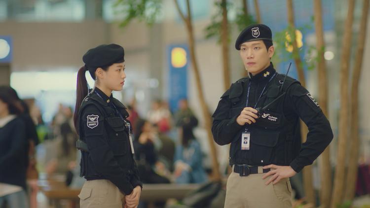 字幕/第7話/到着ロビーで陣痛が始まってしまった外国人の妊婦を発見した保安チームのヨンジュとオ・デギ。空港の医療センターへ行くように説得するが、妊婦は夫がゲートから出てくるまでは行かないと拒否する。ヨルムは夫の捜索を引き受けスヨンにも応援を頼む。浄水器を修理するために出国待合室を訪れたスヨンはそこで妊婦の夫を見かける。