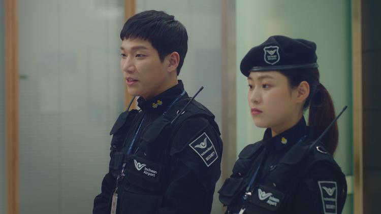 字幕/第7話/到着ロビーで陣痛が始まってしまった外国人の妊婦を発見した保安チームのヨンジュとオ・デギ。空港の医療センターへ行くように説得するが、妊婦は夫がゲートから出てくるまでは行かないと拒否する。ヨルムは夫の捜索を引き受けスヨンにも応援を頼む。浄水器を修理するために出国待合室を訪れたスヨンはそこで妊婦の夫を見かける。
