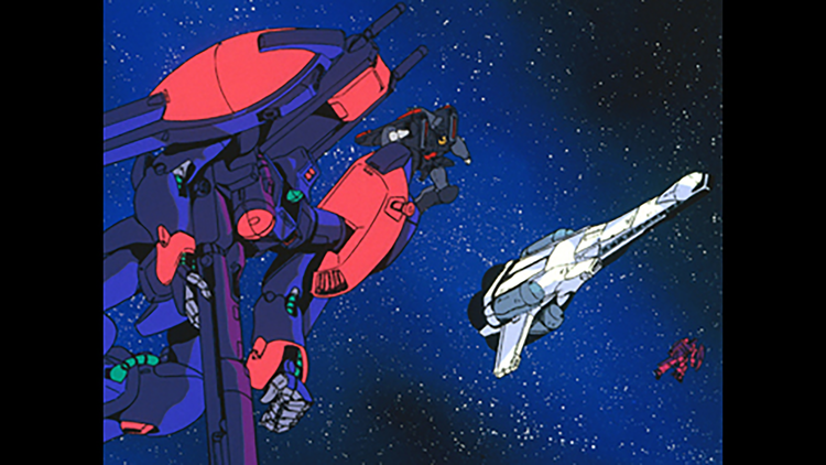 第3話 エンドラの騎士/シャングリラに入港してきたネオ・ジオン軍の巡洋艦エンドラ。戦闘を避けようと、ブライトはアーガマをコロニー内に退避させた。その時、ジュドーはZガンダムを奪取するため、アガーマ艦内への潜入に成功していた。【提供:バンダイチャンネル】