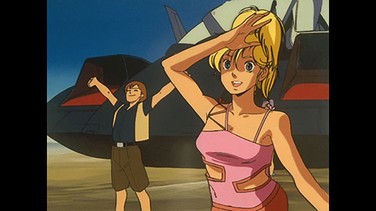 第7話 ガザの嵐/ついにアーガマの一員となったジュドー。3機のガザD隊が襲撃してきた。ジュドーはジャンク屋組合へ工業用ハッチの開閉権の交渉で、留守をしている。そのピンチを救ったのは、ラビアンローズから来た少女ルー・ルカのコア・ファイターだった。【提供:バンダイチャンネル】
