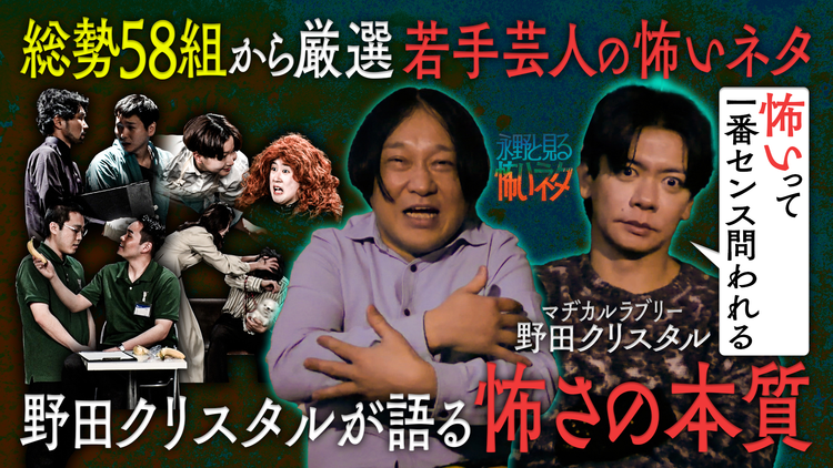 永野と見る怖いネタ 今夜のゲストは野田クリスタル 総勢58組から厳選!若手芸人の怖いネタを見る/笑いと恐怖は表裏一体… 永野と見る芸人たちの怖いネタ 今夜は総勢58組から厳選した4組の若手芸人たちの怖いネタを見る