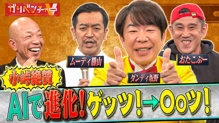 「AIを駆使して芸人のネタを進化させよ!&AIアニメの最前線を特集」/小峠CEO率いるベンチャー企業「ガリベンチャーV」の使命は 「地球上に新たなドキドキワクワクを創ること」 人間とVTuberの新感覚な冒険&実験&発見バラエティ!異次元・異業種コラボを実現し、これまでにない新企画をスタートアップ!!今回もスタジオに新たな方向性を模索する…。