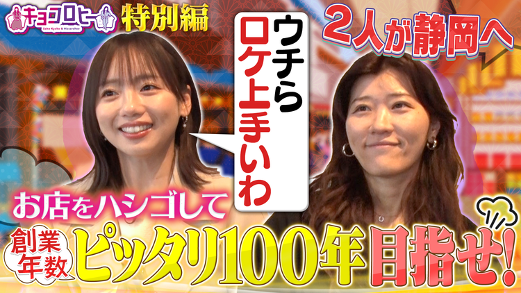 スピンオフ特番 イベントPRで春の静岡へSP!!/▼キョコロヒーの2人が静岡ロケへ!!今回は5月4日(月・祝)に開催される番組イベントを静岡でPRしまくるスピンオフ特番!!▼2人が挑むのは静岡の街中にあるお店を 合計創業年数が「ぴったり100年」になるように回りながら イベントもPRするというゲーム!!