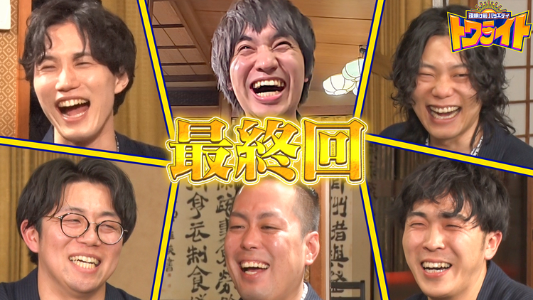 夜明け前バラエティ トワライト 【最終回】NewAired on 2026/03/2815minsSharePlayWatch LaterAre you the member?Login【最終回】/ついに最終回…!町田の運転で最後は温泉宿へ!お酒を飲みながら、賞レースについてや、お互いの良さを褒める…最後にふさわしいアツい話が盛りだくさん!More夜明け前バラエティ トワライト 【最終回】【最終回】/ついに最終回…!町田の運転で最後は温泉宿へ!お酒を飲みながら、賞レースについてや、お互いの良さを褒める…最後にふさわしいアツい話が盛りだくさん!Series:夜明け前バラエティ トワライトCast出演9番街レトロナイチンゲールダンスエバースバラエティ・音楽バラエティ(C)テレビ朝日EpisodesUnlimited Related ItemsPPV Related ItemsFree Related ItemsSorting夜明け前バラエティ トワライト 【最終回】【最終回】/ついに最終回…!町田の運転で最後は温泉宿へ!お酒を飲みながら、賞レースについてや、お互いの良さを褒める…最後にふさわしいアツい話が盛りだくさん!New夜明け前バラエティ トワライト 【エバース町田の実家へドライブ旅行 町田実家編】【エバース町田の実家へドライブ旅行 町田実家編】/ついに町田実家に到着!両親の前で伝説の腹話術ネタを披露でタジタジに!?さらに数学教師の父から初めて授業を受ける!そして町田から両親に伝える、感謝の言葉とは…?New夜明け前バラエティ トワライト 【エバース町田の実家へドライブ旅行】【エバース町田の実家へドライブ旅行】/エバース町田がご両親に感謝を伝えるため、皆で実家へドライブ旅行!「家族で外食するときは現地集合だった」町田家の奇妙なルールが明らかに!?車中でドライブソングも熱唱…アカペラに挑戦し謎のノリが!!夜明け前バラエティ トワライト 【好きな男待つ女の顔見たら分かるわ選手権完結編】【好きな男待つ女の顔見たら分かるわ選手権完結編】/エバースのネタ中の名台詞を選手権に!表情ややり取りの返答を頼りに、自分のファンの女性を当てる!ギャルモデルまぁみのセクシー挨拶に一同大興奮!なぜかM-1以来のアノ町田車披露!?佐々木&なかるてぃんはダブルバックハグ…ついに正解なるか!夜明け前バラエティ トワライト 【好きな男待ってる女の顔見たら分かるわ!!選手権】【好きな男待ってる女の顔見たら分かるわ!!選手権】/エバースのネタ中の名台詞を選手権に!表情ややり取りの返答を頼りに、自分のファンの女性を当てる!金魚番長が参戦!元乃木坂や巨乳グラドルが登場で大興奮!?町田は35万のアウターで女性をキュンとさせる!夜明け前バラエティ トワライト 【女子でも笑えるちょっとHな話 完結編】【女子でも笑えるちょっとHな話 完結編】/熊プロ・ダブルヒガシ・紺野ぶるまと共に女子でも笑えるちょっとHな話のボーダーを決める!ダブヒガ大東が初体験で緊張のあまり…熊プロは元カレとお風呂で××…ノロケエピソードにゆうちゃみも「可愛すぎる!」夜明け前バラエティ トワライト 【女子でも笑えるちょっとHな話】【女子でも笑えるちょっとHな話】/熊プロ・ダブルヒガシ・紺野ぶるまと共に女子でも笑えるちょっとHな話を披露!ゆうちゃみ・ゆい小池・たけうちほのかがジャッジし、ちょうど笑えるボーダーラインを検証!熊プロがオジ様とラブホで…佐々木がエッチなお店で…テレビ初出しの衝撃エピソードが!夜明け前バラエティ トワライト 【スターにこう褒められたい!!発表会】【スターにこう褒められたい!!発表会】/素敵じゃないか・家族チャーハンが参戦!「普段は恥ずかしくて言えないけど、スターにこんな風に褒められたい!!」この機会に願望を曝け出す!「タモリさんに…」「天海祐希さんに…」なかなか聞けないエバースの恥ずかしい本音とは!?夜明け前バラエティ トワライト 好きな女待ってる男の顔見たら分かるわ選手権完結編好きな女待ってる男の顔見たら分かるわ選手権完結編/エバースのM-1ネタを元にした大人気企画の女性バージョン!男性の表情や仕草で自分のファンを当てる!たけうちほのかのセクシーアピールにイケメン男性も興奮!!福留光帆の告白に、恋愛アドバイザー町田が本気のエールを送る!傷心中のイワクラは告白成功なるか?夜明け前バラエティ トワライト 【好きな女待ってる男くらい顔見たら分かるわ選手権】【好きな女待ってる男くらい顔見たら分かるわ選手権】/エバースのM-1ネタを元にした大人気企画…今回は初の女性バージョン!男性の表情や仕草で自分のファンを当てる!ハシヤスメ、福留光帆、たけうちほのか、イワクラらが参戦!ハシヤスメが「だーれだ?」でアピール…失恋直後のイワクラはトキメキまくり!!12345