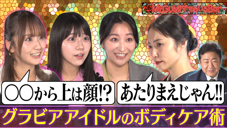 MEGUMIママのいるBar グラビアの宿命!日焼けボディケア術NewAired on 2026/02/2317minsOfficial WebsiteSharePlayWatch LaterAre you the member?Loginグラビアの宿命!日焼けボディケア術/今夜の話題は…▽グラビア界のリアル本音激白 ▽ファンの理想と現実のギャップ問題 ▽水着で挑む地獄の○○撮影 ▽平成グラビア黄金期(秘)ご褒美MoreMEGUMIママのいるBar グラビアの宿命!日焼けボディケア術グラビアの宿命!日焼けボディケア術/今夜の話題は…▽グラビア界のリアル本音激白 ▽ファンの理想と現実のギャップ問題 ▽水着で挑む地獄の○○撮影 ▽平成グラビア黄金期(秘)ご褒美Series:MEGUMIママのいるBarCast出演MEGUMI渡辺隆錦鯉榎原依那森脇梨々夏工藤理子STU48バラエティ・音楽バラエティ(C)テレビ朝日EpisodesUnlimited Related ItemsPPV Related ItemsFree Related ItemsSortingMEGUMIママのいるBar グラビアの宿命!日焼けボディケア術グラビアの宿命!日焼けボディケア術/今夜の話題は…▽グラビア界のリアル本音激白 ▽ファンの理想と現実のギャップ問題 ▽水着で挑む地獄の○○撮影 ▽平成グラビア黄金期(秘)ご褒美NewMEGUMIママのいるBar 現役人気グラドルがガチ相談現役人気グラドルがガチ相談/今夜の話題は…▽令和&平成グラビア界のリアルを語る ▽グラビアアイドル衝撃仕事(秘)パンチ ▽レジェンドMEGUMIママのグラビア解説 ▽得意のポーズは◯◯見せ!MEGUMIママのいるBar モー娘。来店!伝統と進化の秘訣モー娘。来店!伝統と進化の秘訣/今夜の話題は…▽圧倒的ライブパフォーマンスの秘密 ▽OG直伝継承されるオリジナルの振り付け ▽アイドル戦国時代!ライバルは◯◯ ▽メイクが苦手?緊急美容相談会でママ一喝MEGUMIママのいるBar 大倉忠義!アイドル&経営者大倉忠義!アイドル&経営者/今夜の話題は…▽ジュニア育成“絶対売れる”スターの資質 ▽男性アイドル戦国時代に思うこと... ▽憧れは父親...今後の夢は?MEGUMIママのいるBar 大倉忠義来店!育成の苦悩激白大倉忠義来店!育成の苦悩激白/今夜の話題は…▽岸谷蘭丸の野望!本気で◯◯したい ▽夢は東京都知事!その理由とは?▽タイプロで反省?(秘)話 ▽ライブ演出の難しさ!ファンが観たい演出法とはMEGUMIママのいるBar 名門大学生で実業家!岸谷蘭丸のリアル名門大学生で実業家!岸谷蘭丸のリアル/今夜の話題は…▽親世代必見!海外留学のメリット ▽次元が違うスイス留学驚きの実態 ▽早稲田→NY→イタリア(秘)勉強法 ▽MEGUMI流の休日過ごし方MEGUMIママのいるBar 歌舞伎界の知られざる裏側告白歌舞伎界の知られざる裏側告白/今夜の話題は…▽「掛け声はスカウト制?」大向こう(秘)ルール ▽歌舞伎俳優の肌ケア ▽子役時代の化粧で忘れられない思い出 ▽人気アニメとコラボ古典芸能の進化MEGUMIママのいるBar 映画「国宝」歌舞伎俳優のリアル感想映画「国宝」歌舞伎俳優のリアル感想/今夜の話題は…▽歌舞伎俳優・中村隼人が語る伝統芸能の裏側 ▽「覚えが早い」「NG出さない」先輩俳優の凄さに若手は苦労?▽『国宝』で話題…劇場にも変化!▽横浜流星と(秘)交友録MEGUMIママのいるBar リリー&東ブクロ!恋愛本音トークリリー&東ブクロ!恋愛本音トーク/今夜の話題は…▽東ブクロ“愛し方がわからない”悩み告白 ▽リリー恋愛必勝法「家くる?」 ▽永遠のテーマ男女の友情は成立する?▽問題発言連発にMEGUMIママ困惑!MEGUMIママのいるBar リリー&東ブクロ!モテ男のリアル恋バナリリー&東ブクロ!モテ男のリアル恋バナ/今夜の話題は…▽炎上覚悟?生々しい恋愛トーク ▽リリー流驚きの口説きテク ▽恋愛離れに提唱「スマホで◯◯禁止」 ▽MEGUMIママにまさかのアプローチ!?12345