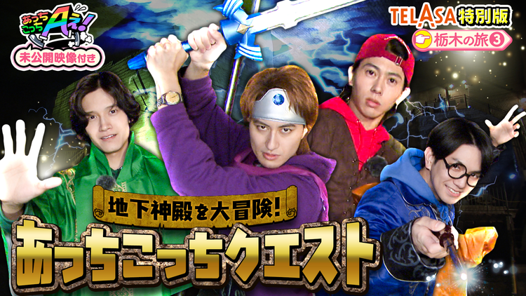 EPISODE65 栃木の旅(3)/未公開映像を加えたTELASA特別版!Aぇ! groupが巨大地下神殿で大冒険!大谷資料館でお手伝いをしようとした、その時!突如現れた魔王により、資料館のスタッフが連れ去られてしまう。最深部にいるスタッフを救い出すため、3つの試練に挑む!“弓の試練”では、メンバー全員、戦意喪失!?