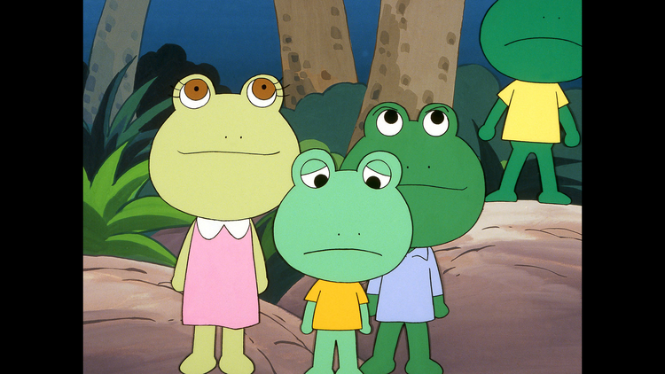 第19話 とべ! チビガエル/相談は任せるニャ/ニャーゴは運動が苦手。明日の体育のジャンプ・テストのため、練習するニャーゴ。そこへ、そんなジャンプじゃだめという声が聞こえてくる。チビガエルのジャンプの練習について、その兄姉カエルが指導をしていたのだ。チビガエルが一人前のカエルになるには、高い木の上からジャンプし、池に飛び込まなければならない。【提供:バンダイチャンネル】