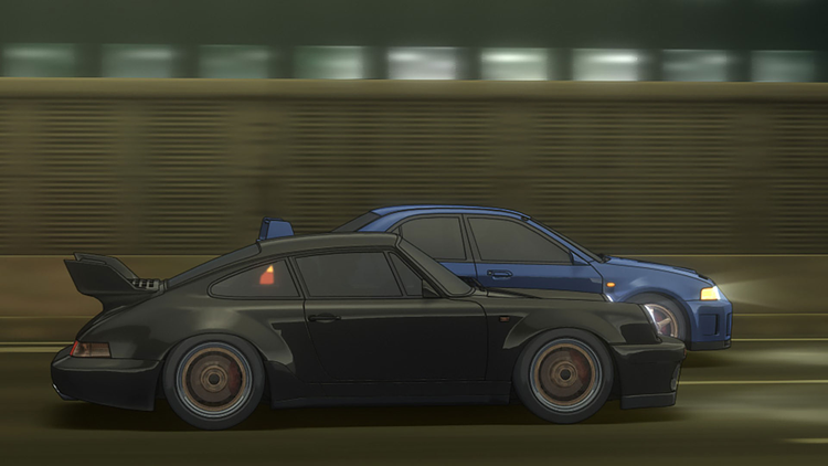 ACT.20 大阪ミッドナイト/環状線に入った達也の「ブラックバード」を迎えるかのごとく、追い越すエイジの「エボV」。そして、目的地・稲田製作所へと誘導する。北見は、シゲに「ブラックバード」のマフラーを作るよう依頼する。一方、エイジの異母弟・マキの「エボVI」がKレーシングから大阪環状線に呼びだされる。【提供:バンダイチャンネル】