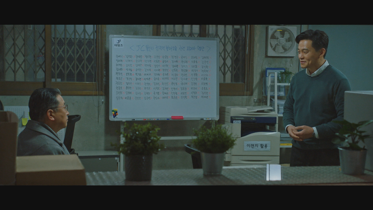 字幕/第8話/ドギョンに拉致されたジョンイン。ドギョンは5年前に2020年のジョンインと電話でつながっていることをジヌから聞かされていた。絶体絶命のジョンインだったが、同時進行で過去に変化が起き、再び目を開けると自宅の部屋にいた。ボードに書かれた犯人の名前が変わっていることに気が付いたジョンインは慌ててジヌに電話を掛ける。