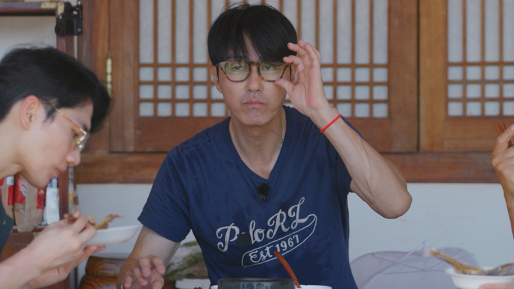 字幕/第08話/智異山で迎える2日目。朝から市場へ買い出しに行っている間に三食ハウスを訪れたのは、俳優のオム・テグ。超内向型でガチガチに緊張しているテグを気遣う2人の先輩たち。昼食は前日から煮込んでいた牛骨スープを使ったトックに舌鼓を打つ。午後は国宝の見学や、川でカワニナ取りをしてアクティビティを満喫する。