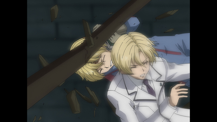 第22話 悲しき怒り/ベスビアが指揮するグリアンの部隊はクラスターE.A.に砲撃を始め、アゲートを差し出さねば更なる砲撃で学園を破壊すると脅しをかける。学園内では、逃げ遅れた生徒の救出にあたっていたクロムの目の前で、瓦礫が崩れ生徒が下敷きになってしまう。クロムは、人造兵の力を使わないというベリルとの約束を思い出すが……。【提供:バンダイチャンネル】