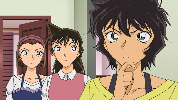 第920話 JKトリオ秘密のカフェ(後編)/蘭、園子、世良がカフェで京都旅行を計画していると、更衣室でウエイターの更家が大きな花瓶で撲殺される事件が発生。客の本巣、ウエイトレスの伊鈴、店長の珠央には殺害する動機があったが、花瓶を振り回し、ロッカーの南京錠を破壊する程の怪力はいなかった。世良は怪力じゃなくても犯行が可能なトリックを見破るが…。