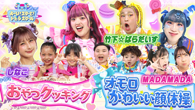 しなこ&MADAMADAカラフルおやつ作り!リズムに合わせてオモロかわいい顔体操/今、子どもたちを中心に大人気!竹下☆ぱらだいす、しなこ、MADAMADAによる初めてのレギュラー番組が爆誕!子どもたちの個性・好奇心・表現する楽しさを大切にしながら、観るたびに心が輝く、視聴者参加型の不思議な学園エンターテインメント!