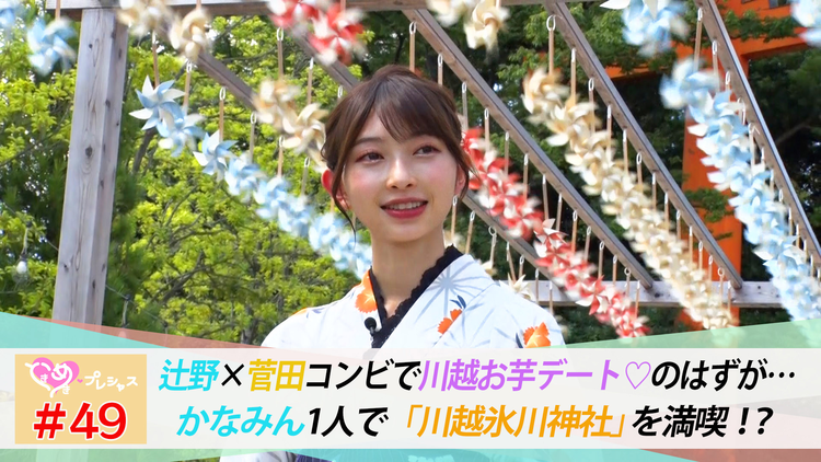 #49 『かなあき川越デート』まさかの…かなみんぼっちロケ!?/辻野かなみ&菅田愛貴のかなあきコンビでデート企画!今回は、“芋の街”埼玉県川越市で あきちゃんの大好きなお芋を食べまくる!!浴衣に着替えて、いざスタート!と思いきや…まさかの主役のあきちゃんが寝坊でかなみん1人ロケに!?あきちゃんは無事に合流することができるのか?最初にかなみんが訪れたのは、縁結びの神社として知られる『川越氷川神社』 かなみんは一体どんなお願い事をしたのか?さらに!あきちゃんがやりたかったという…『川越いもみくじ』に挑戦!果たして、かなみんの運勢は?撮影した「プレシャス♡フォト」は番組のインスタで公開!是非チェックしてください!