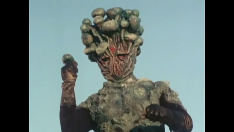 第15話 「恐怖 アオカビジンの東京大地震」/ネオショッカーが創り出した新たな怪人アオカビジン。その体のカビはあらゆるものを溶かし、さらには地盤を破壊して東京中に大地震をもたらしていた。これを阻止しようと仮面ライダーが立ち向かうが、アオカビジンの体に触れることができない。しかし谷は、アオカビジンが火に弱いということを発見していた。
