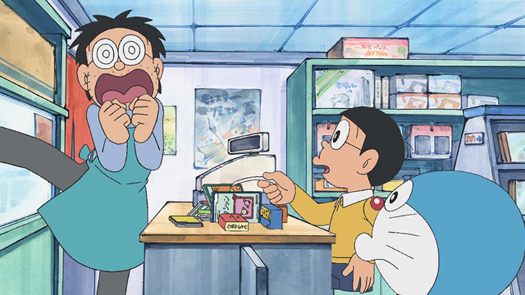 タヌ機/パパに買ってもらったという最新式のデジタルカメラで、撮(と)ったばかりのドラえもんの写真をその場でタヌキのように加工してみせるスネ夫。さらに、ドジをふんでいるのび太の写真もいつの間にか撮っており、それにもタヌキの加工をしてバカにする。しずかちゃんに笑われてしまい、落ちこむのび太と、いかりがおさまらないドラえもん。