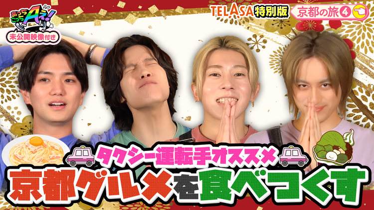 EPISODE80 京都の旅(4)/未公開映像を加えたTELASA特別版!タクシー運転手オススメ、京都グルメをかけたゲーム対決後半戦!2人目の運転手激推しスイーツ“抹茶パフェ”をめぐり「小豆つかみ」で対決!ドライバーとメンバー5人で25個以上つかめれば、全員グルメゲット!1人5粒を目指す中、正門がまさかの結果に…。