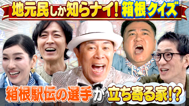 ナイナイMC!GWに行きたい!箱根 地元民しか知らナイクイズに答え続ける旅/人気観光地・箱根を旅しながら…解答席を見つけたら 箱根の地元民が考えた、住んでいるからこそ分かるクイズに挑戦!矢部・アンミカVSアンタッチャブル 勝つのはどっち!?街中に突然解答席が現れる異様な光景に一同困惑…街の電気屋さんに箱根駅伝選手が来訪!?