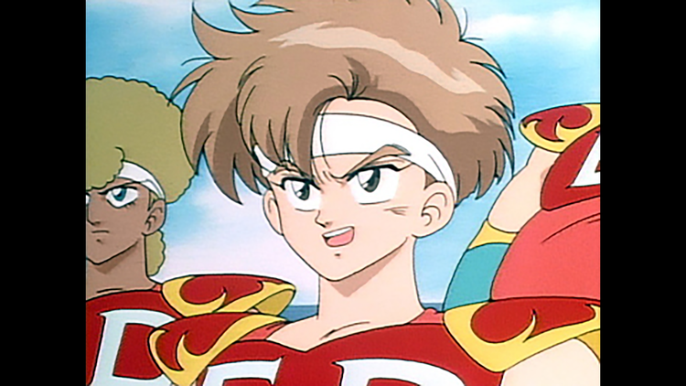 第5話 見えたぞ炎のマーク!倒せ謎の闘球児!!/球川小闘球部に入部を認められた弾平たち。下校途中、海辺でブイを的に小石を投げて遊んでいたが一度もブイに当たらない。そこへ、謎の少年が現れ、次々とブイに命中させていく。その少年は、謎の新設校、セント・アローズ学園のキャプテン二階堂大河だった!【提供:バンダイチャンネル】