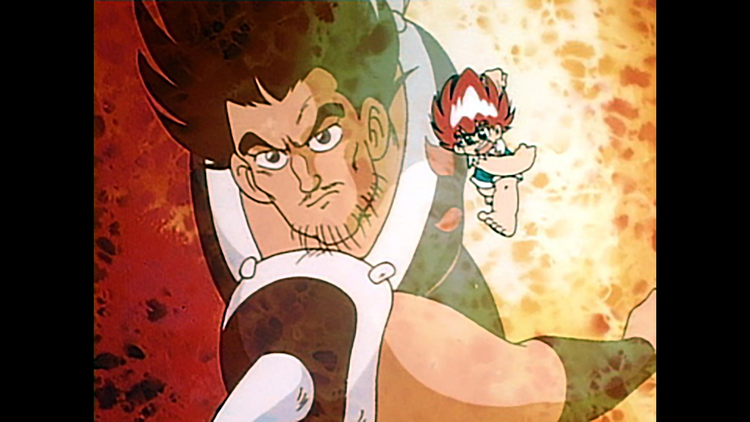 第1話 誕生!炎の闘球児/一撃弾平は、闘球(スーパードッジ)の名選手である父、弾十郎を尊敬し目標にする少年。球川小学校入学式の前日、犬に襲われそうになっている赤ちゃんをボールを投げて助けた弾平。球川小闘球部キャプテンの三笠はそのパワーを見込んで、弾平を闘球部へ誘うが…。【提供:バンダイチャンネル】